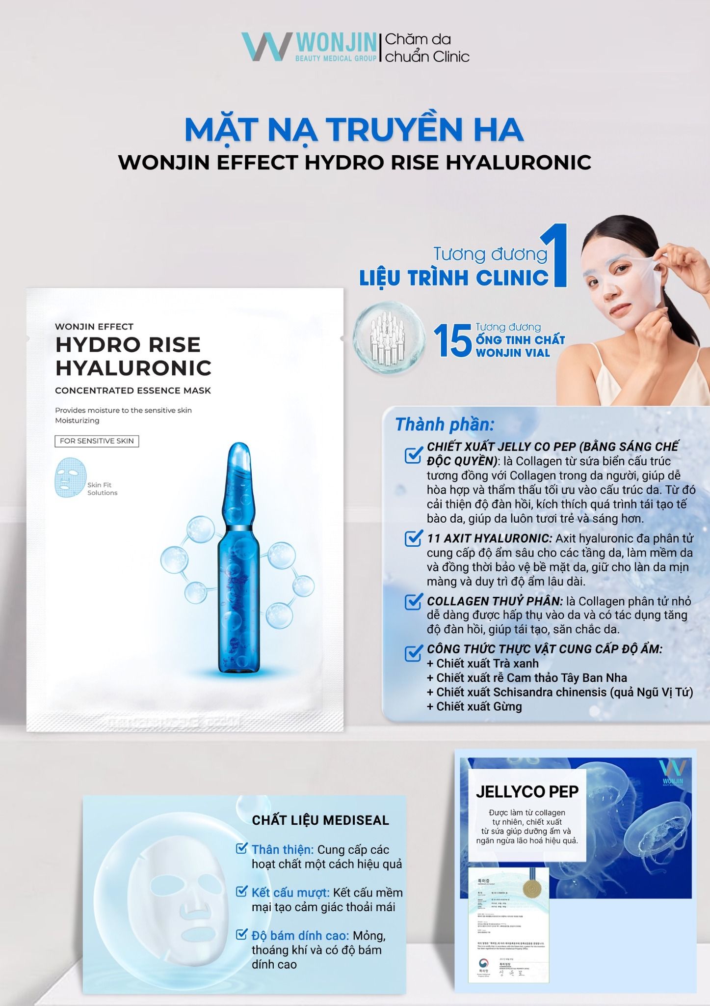 Mặt nạ WONJIN Truyền HA Cấp Ẩm Chuyên Sâu